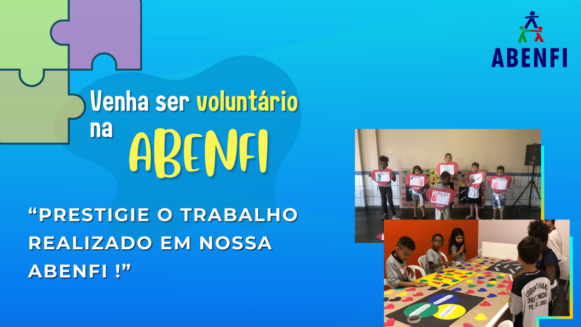 Na ABENFI o voluntário pode atuar em todos os nossos projetos: Clube do livro, Música, Dança, Kung-fu, Informática, Inglês, bem como na limpeza, administração, infraestrutura, promoção e venda de negócios sociais, entre outros.